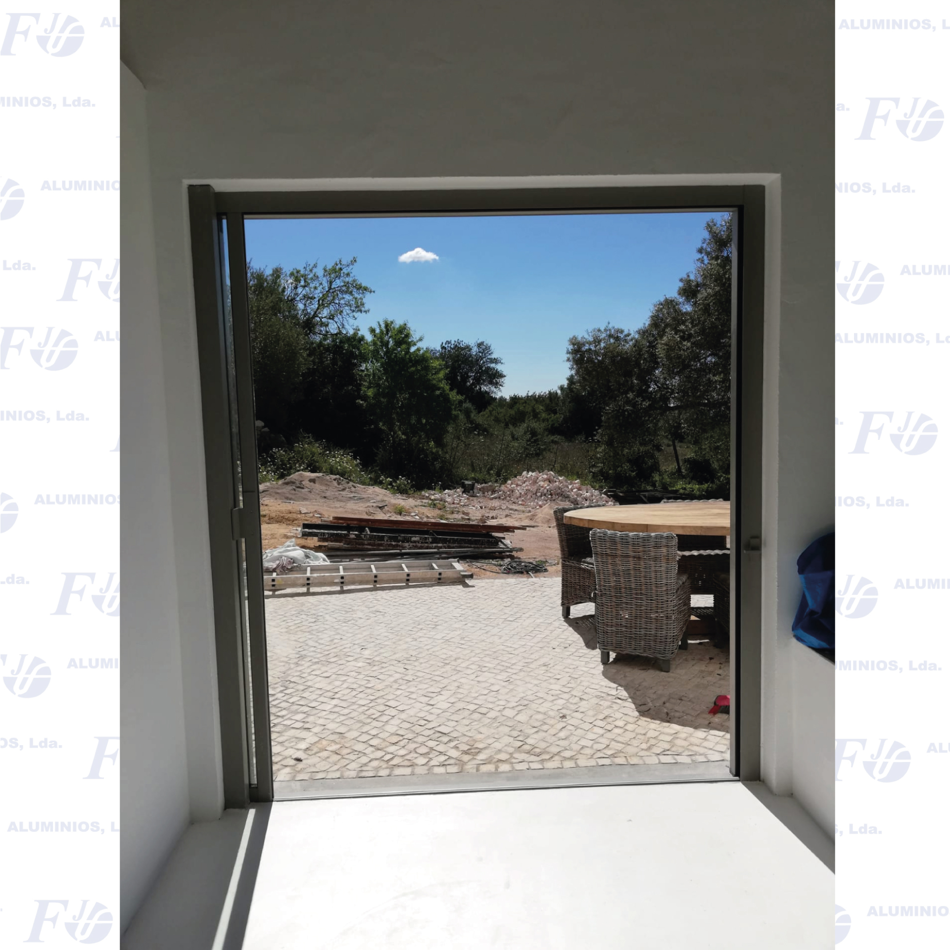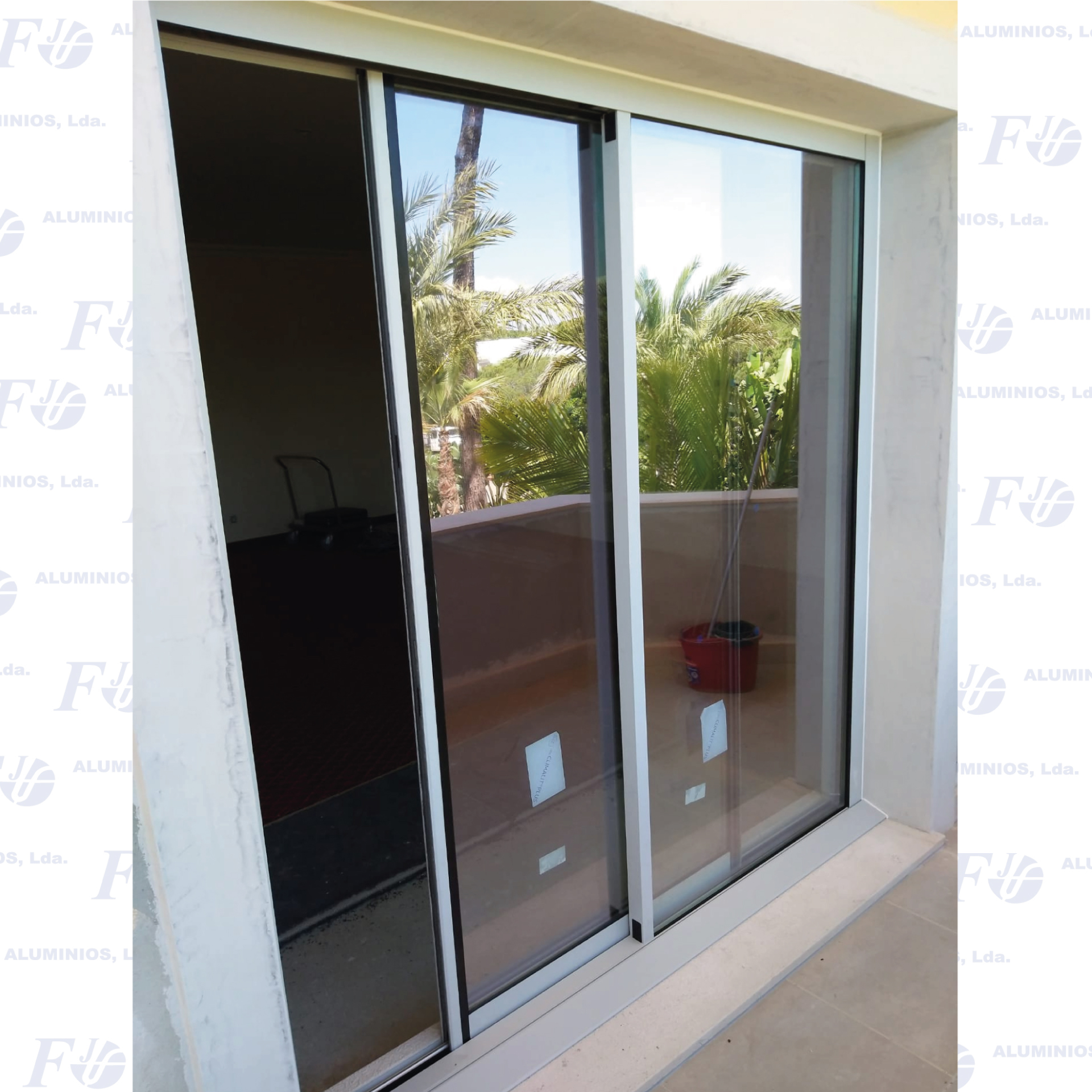 As folhas deslizam horizontalmente, em carris, e portanto a sua abertura não ocupa qualquer espaço no interior ou exterior da casa.